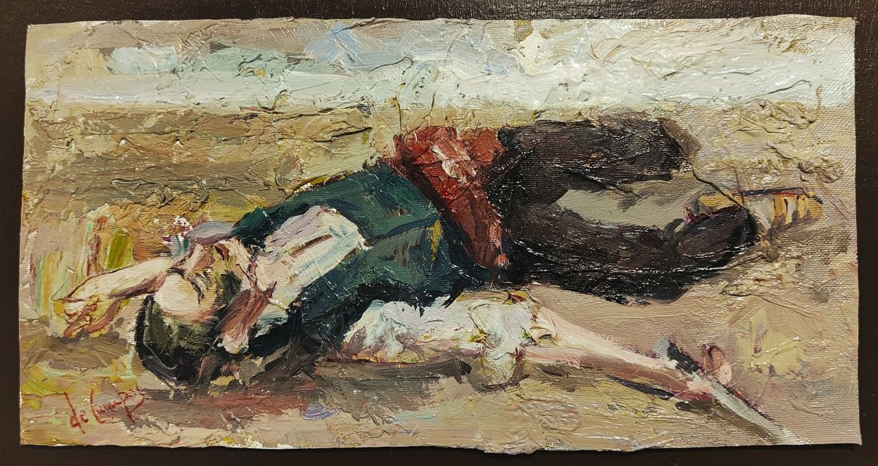 La muerte o su cercanía están presentes en todas estas impresionantes pinturas. La muerte, novia del legionario y del revolucionario, lo es también del bandolero. La lucha por la mujer deseada entre dos bandoleros, empuñando ya dos navajas albaceteñas, presagia una tragedia y probable muerte, impidiendo los hombres que las mujeres interfieran para parar la lucha fatal.