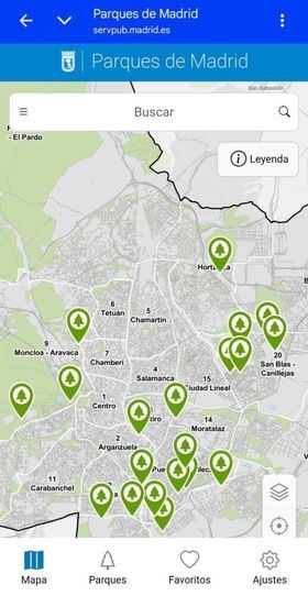 En esta primera fase, la aplicación Parques de Madrid ha incorporado un mapa interactivo de veinte parques de la ciudad, con información geolocalizada y descripciones sonoras de su flora, fauna, infraestructuras y monumentos.