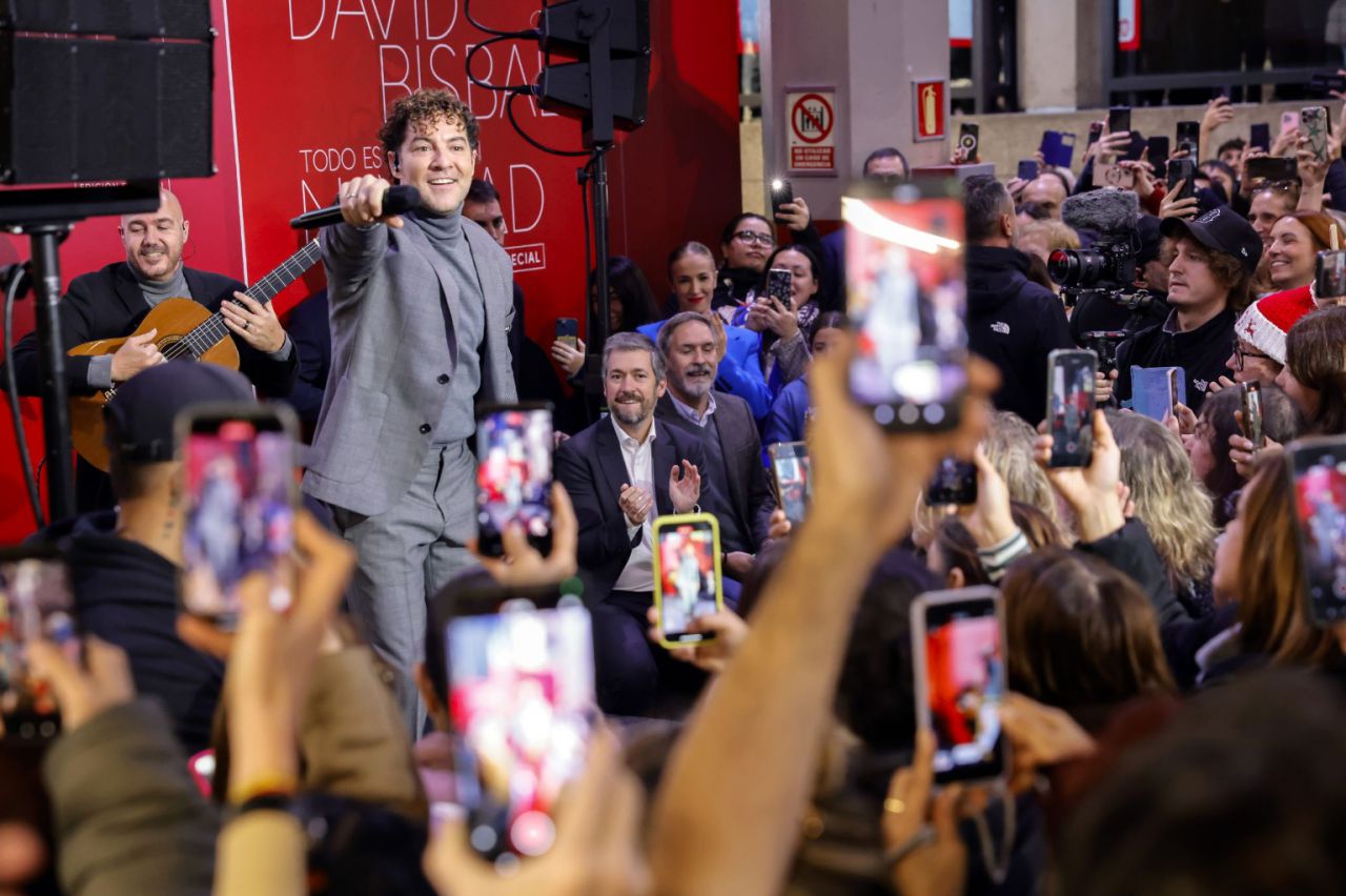 David Bisbal ha dado este martes la bienvenida a la Navidad a ritmo de villancicos y su 'Todo es posible en Navidad', con un concierto sorpresa en la estación de Sol y un viaje en el Tren de la Navidad de Metro de Madrid hasta plaza de España.