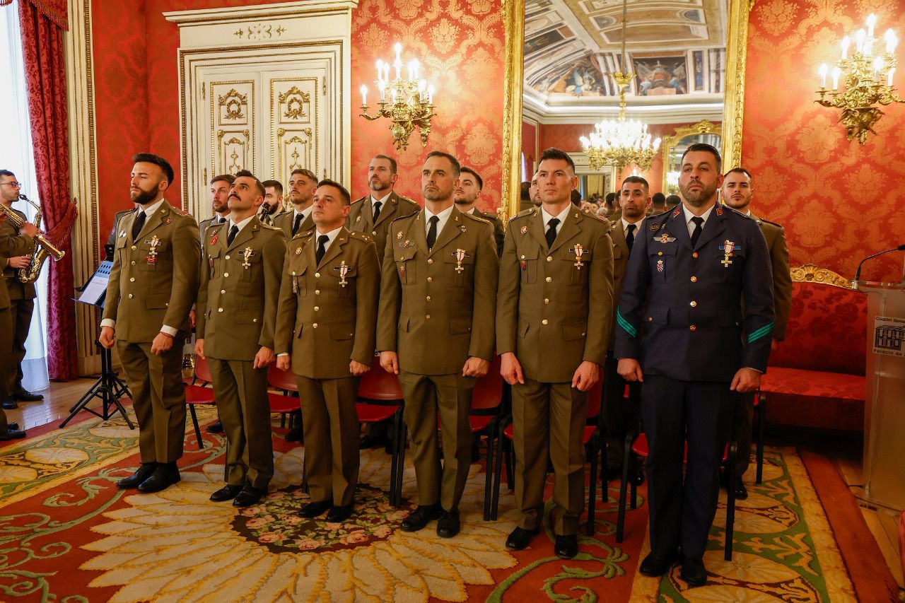 Los premiados a la Cruz del Mérito Militar con distintivo amarillo han sido el capitán Omar Queipo, el brigada Francisco Manuel del Castillo, el cabo primero Guillermo Palacios, el cabo Raúl Rodríguez y cabo José Manuel Martínez.
