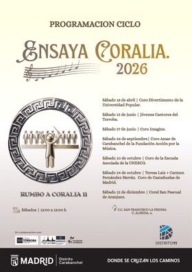 Carabanchel presenta 'Ensaya Coralia' en 2026, un ciclo musical en el centro cultural San Francisco La Prensa, con diversas agrupaciones corales, con conciertos programados de abril a diciembre, para promover la música en vivo y la cultura.