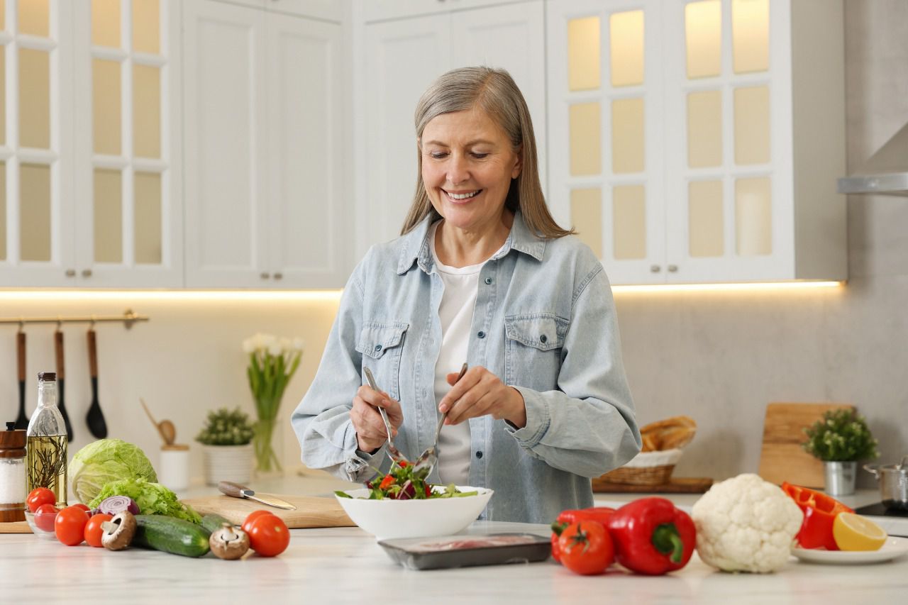 Con 50 y 60 años de edad, se suelen necesitar menos calorías por día que con 30 o 40. Las legumbres, las nueces, la soja, el pescado y los productos lácteos bajos en grasa son buenas opciones para mantener el peso ideal.