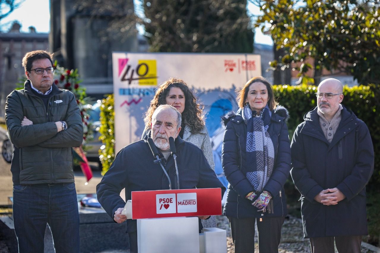 Al acto, celebrado en el cementerio de la Almudena, han asistido la portavoz del PSOE en el Ayuntamiento de Madrid, Reyes Maroto; el delegado de Gobierno en Madrid, Francisco Martín; el exalcalde de Madrid, Juan Barranco; el secretario general del PSOE de Madrid, Óscar López y la portavoz adjunta del PSOE, Enma López.