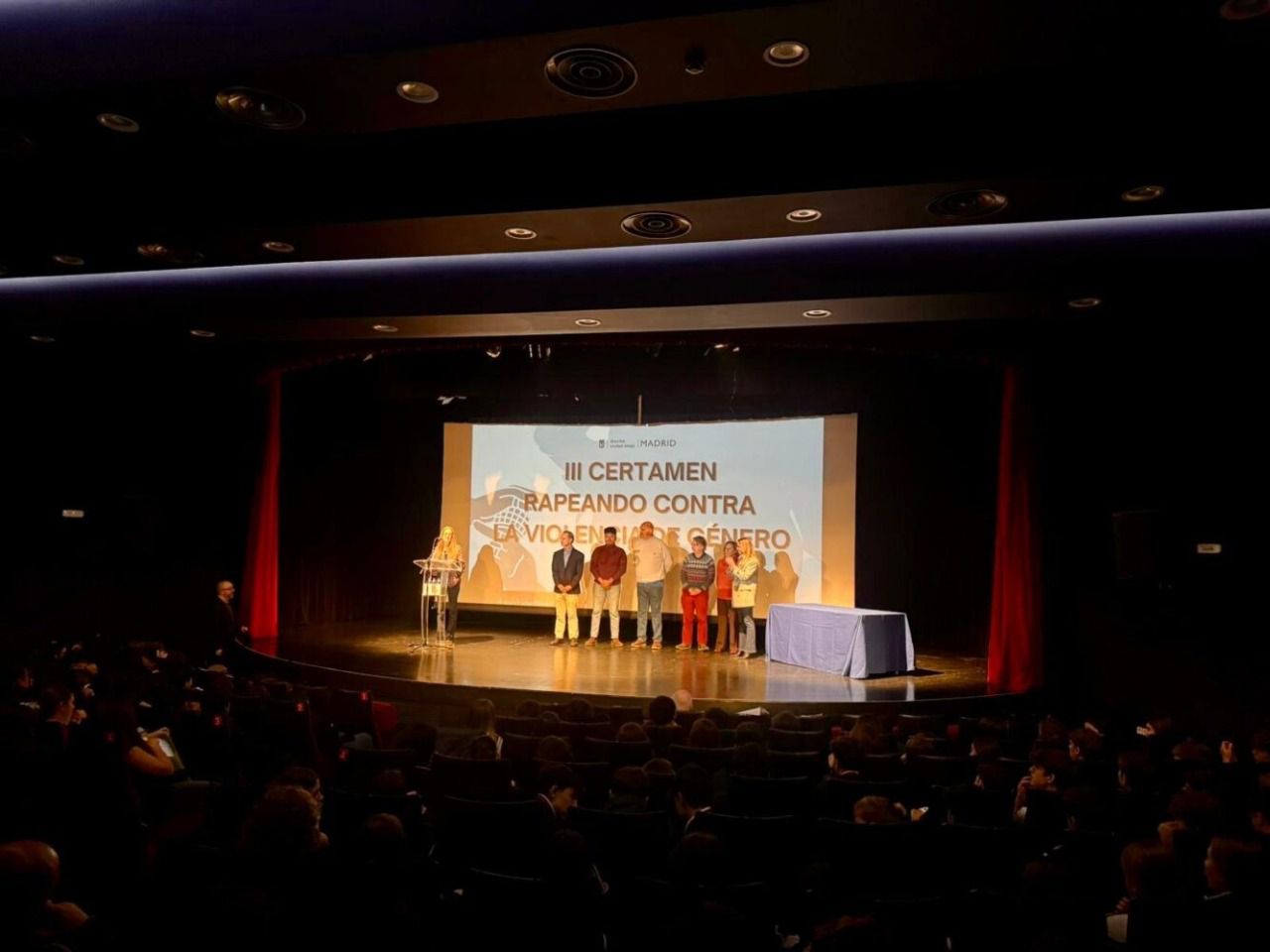 La concejala de Ciudad Lineal, Nadia Álvarez, ha presidido el acto de entrega de premios de la tercera edición del certamen escolar ‘Rapeando contra la violencia de género’, organizado por la junta municipal con motivo del 25N, Día Internacional para la Eliminación de la Violencia contra las Mujeres.