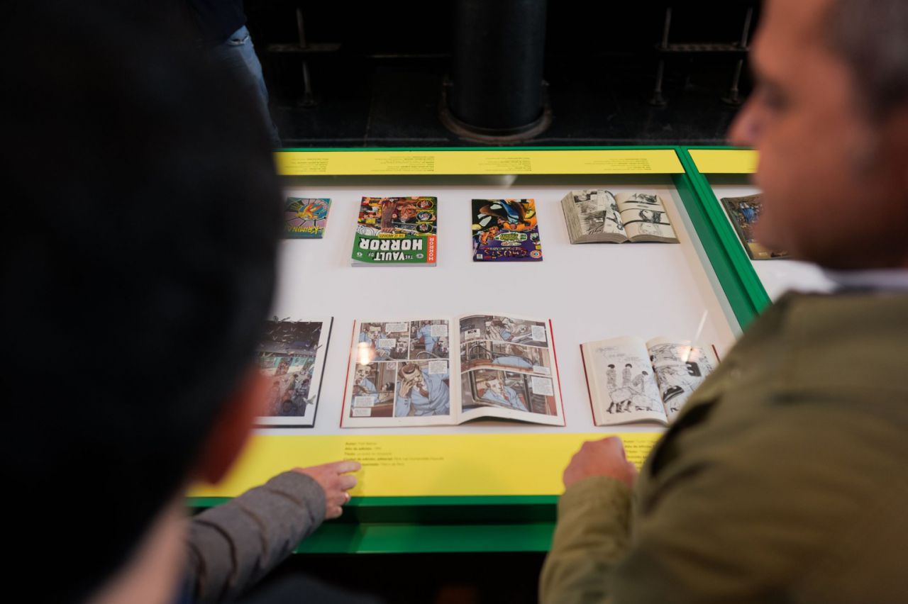 La Nave de Motores, que forma parte de los Museos de Metro y que recibió, en 2025, a más de 16.000 personas, acoge desde el pasado mes de diciembre esta exposición gratuita que une el arte del tebeo con la cultura del transporte urbano.