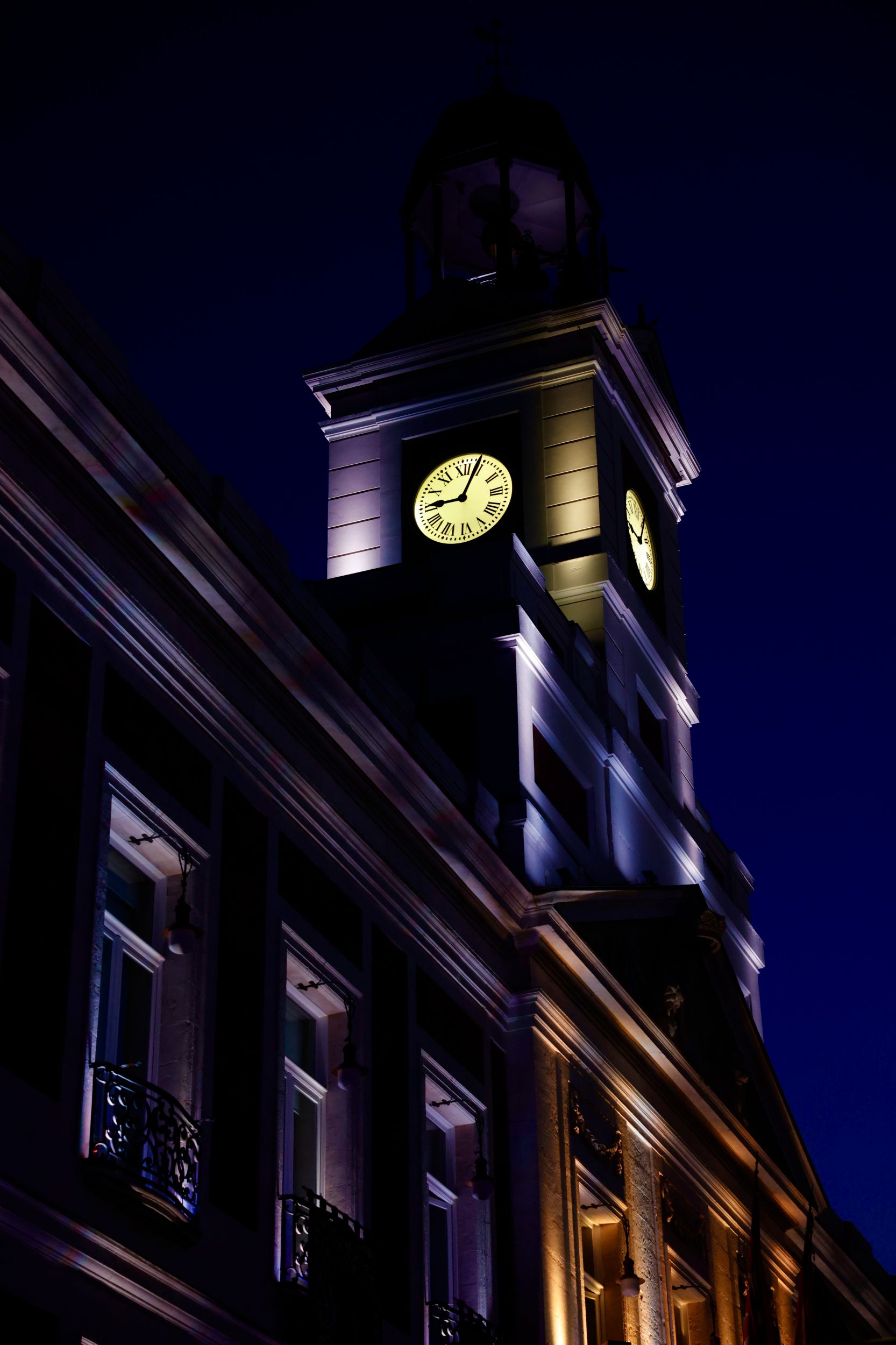 La fachada de la Real Casa de Correos se ilumina de azul por el Día Mundial de Concienciación sobre el Autismo