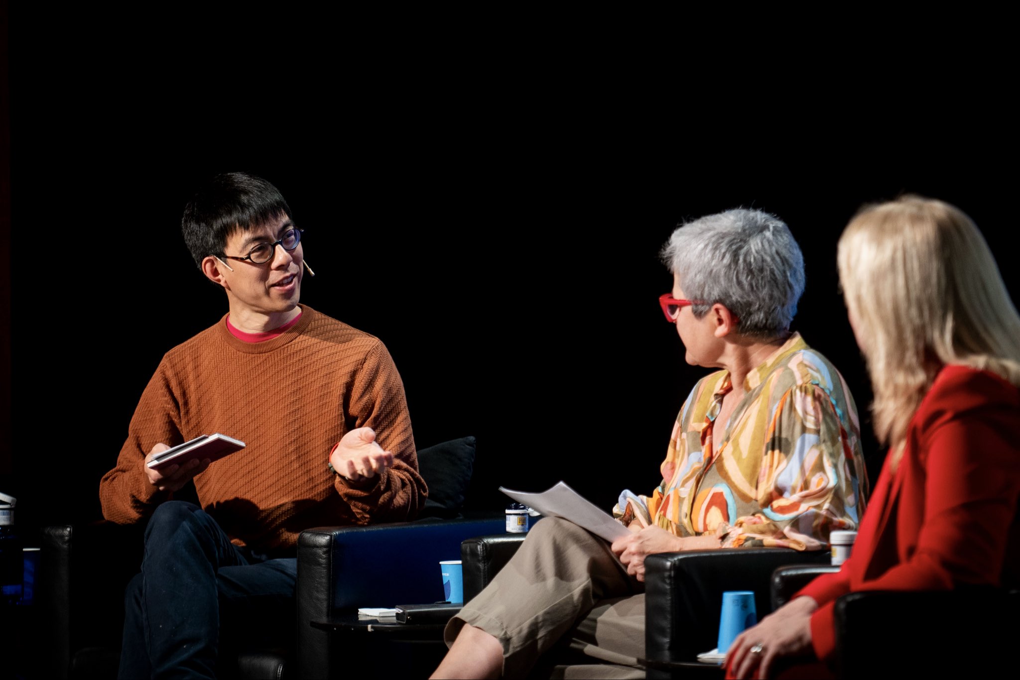 La Feria del Libro de Madrid ha presentado el cartel de su 85.ª edición –que se celebrará del 29 de mayo al 14 de junio– en un acto celebrado en el Instituto Cervantes, en el que han participado Eva Orúe, directora de la Feria del Libro de Madrid, y Miguel Pang, autor del cartel. (Foto: © Juan Barbosa )