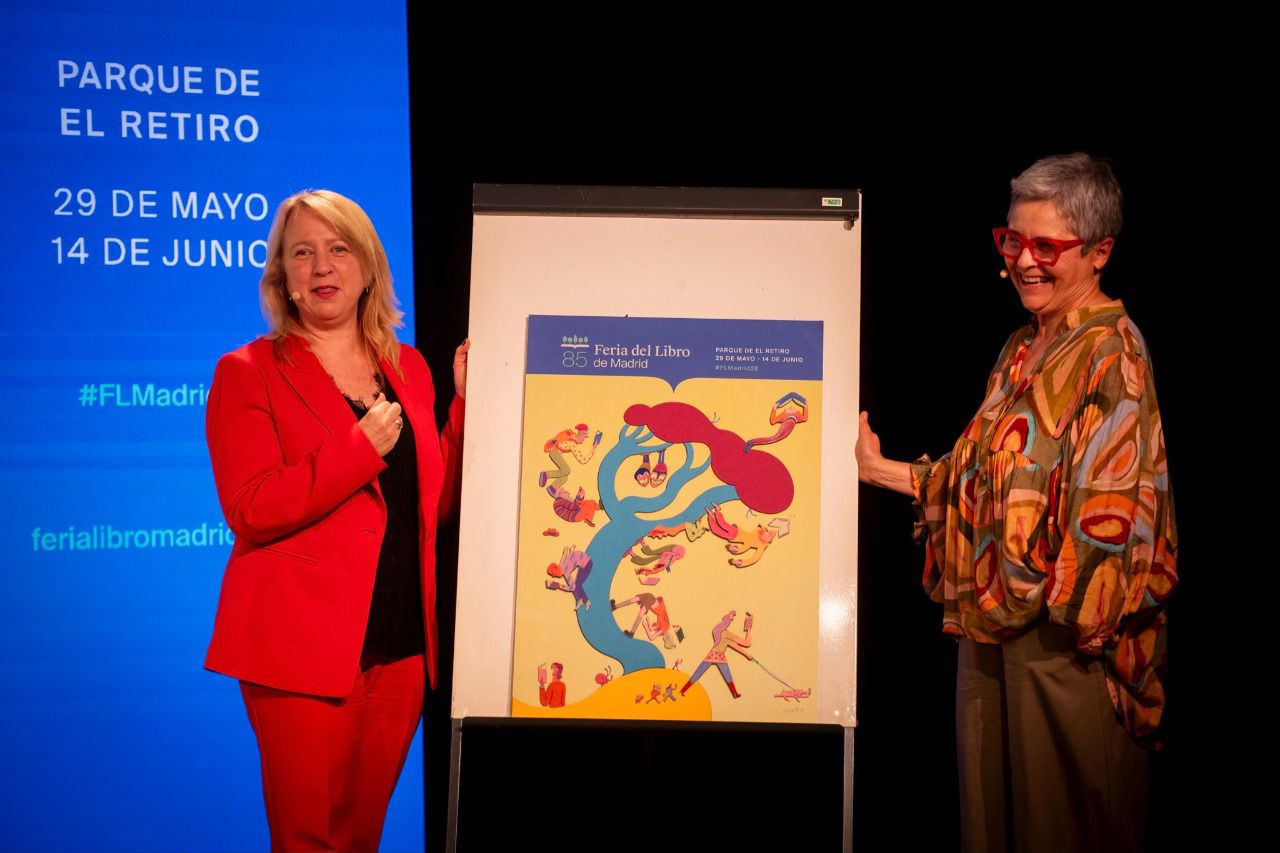 La Feria del Libro de Madrid ha presentado este miércoles el cartel de su 85ª edición –que se celebrará del 29 de mayo al 14 de junio–, en un acto celebrado en el Instituto Cervantes, en el que han participado Eva Orúe, directora de la Feria del Libro de Madrid, y Miguel Pang, autor del cartel.
