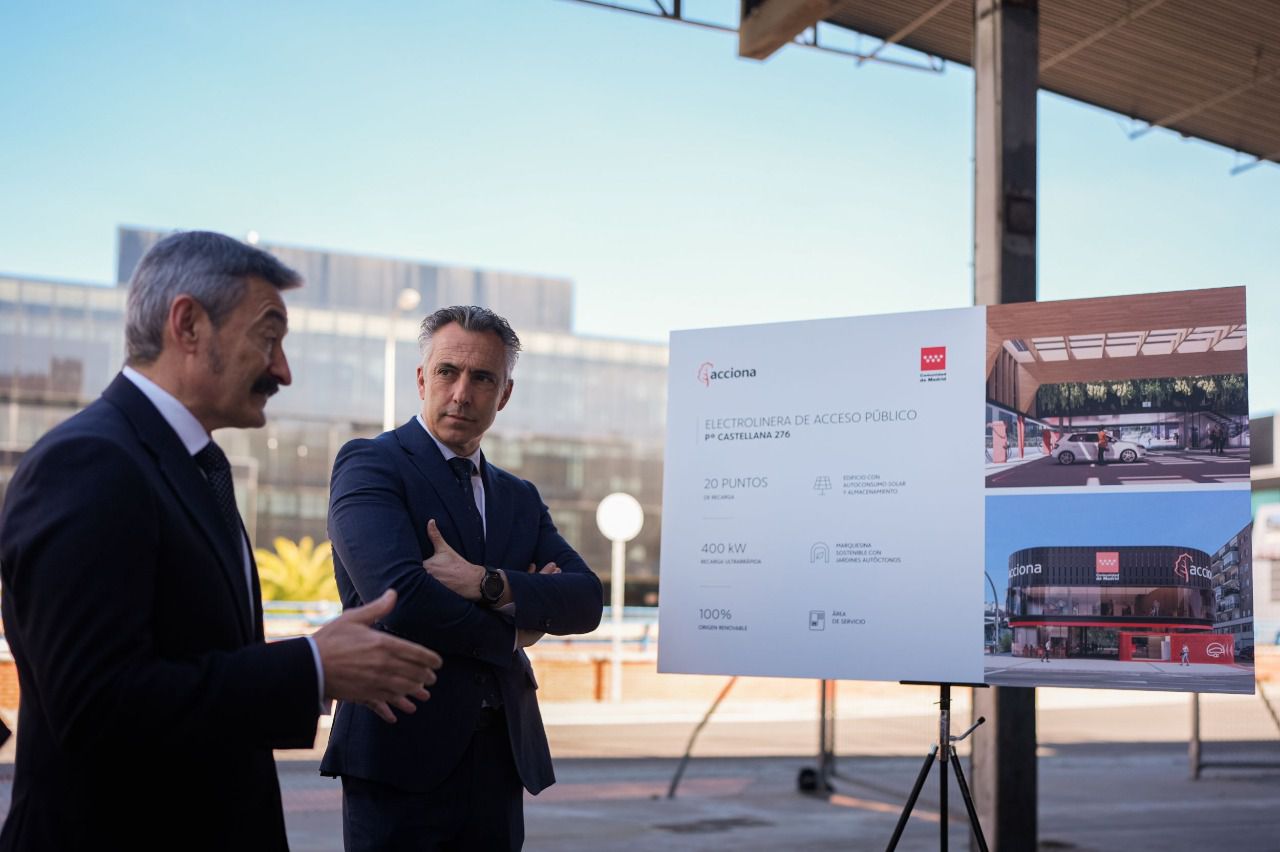 La Comunidad de Madrid pondrá en marcha en 2027 la mayor electrolinera pública dentro de la M-30, en el paseo de la Castellana, con energía 100% renovable, carga ultrarrápida, zona de intercambio de baterías y tecnología innovadora.