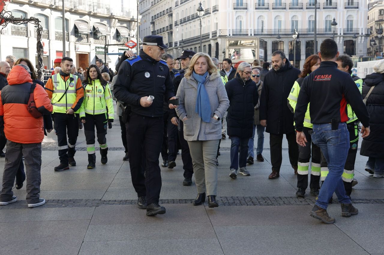 Serán más de 160 policías municipales, 40 sanitarios del Samur y seis bomberos los desplegados en las uvas de la Puerta del Sol, además de un centenar de operarios del servicio de limpieza municipal.