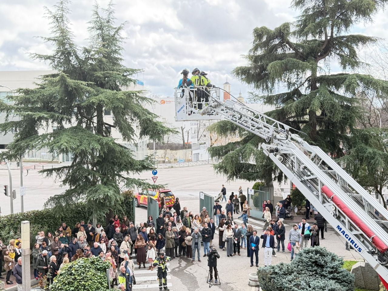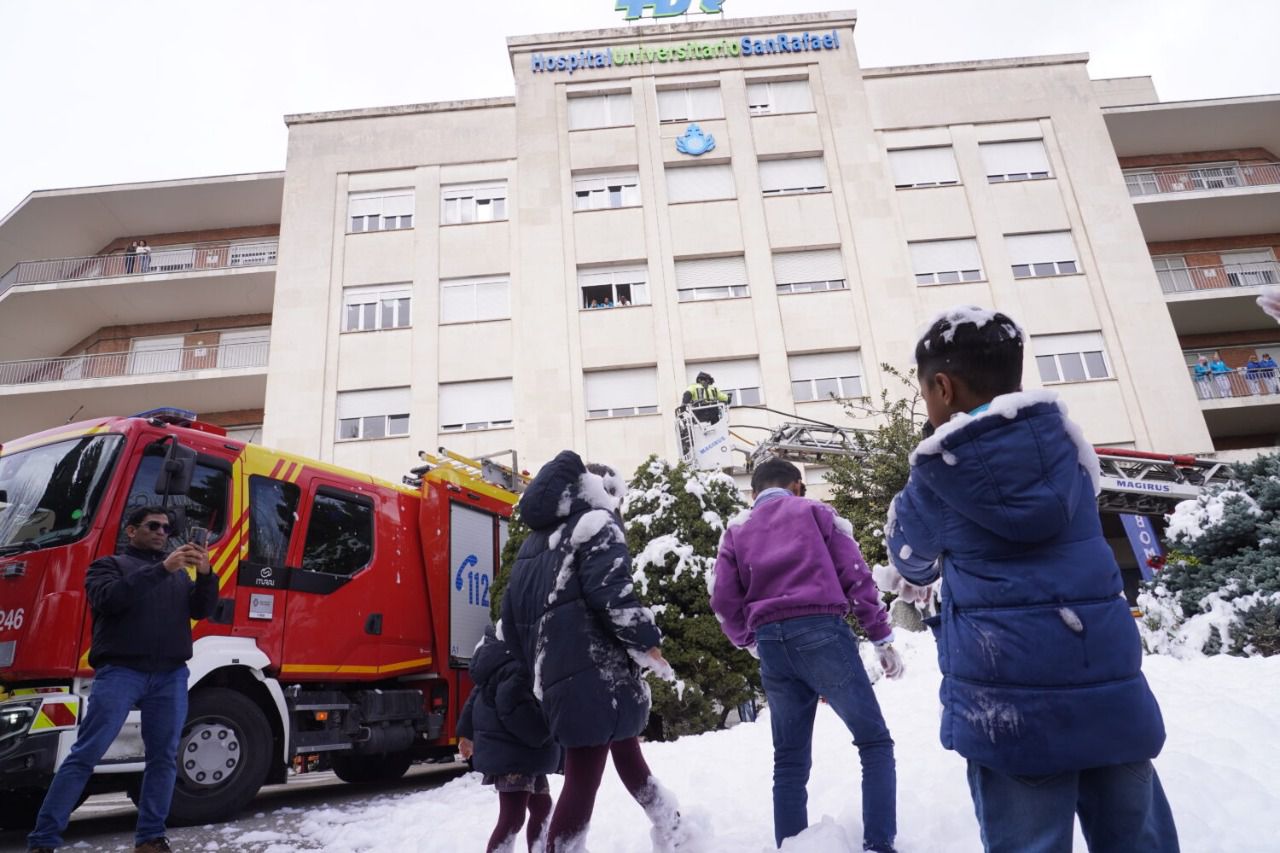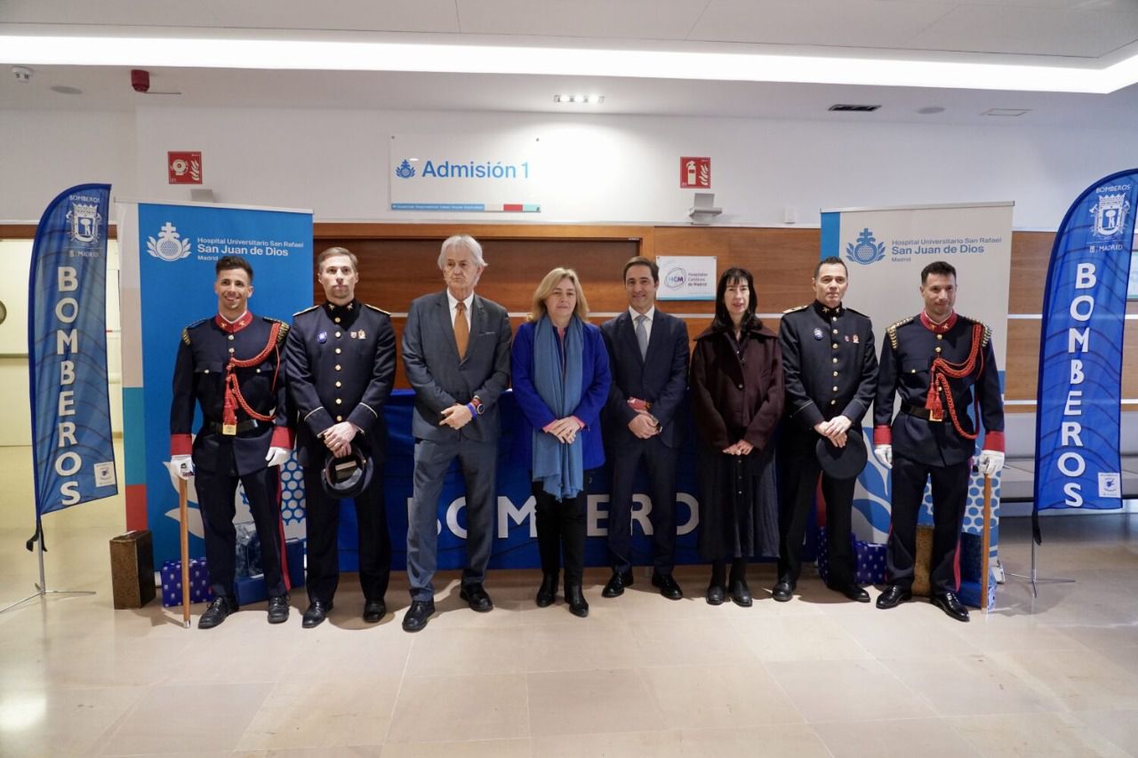 El Cuerpo de Bomberos de Madrid ha celebrado la festividad de su patrón, San Juan de Dios, con el tradicional reparto de juguetes a los niños ingresados en el Hospital Universitario San Rafael y una exhibición de maniobras en la explanada del centro hospitalario.