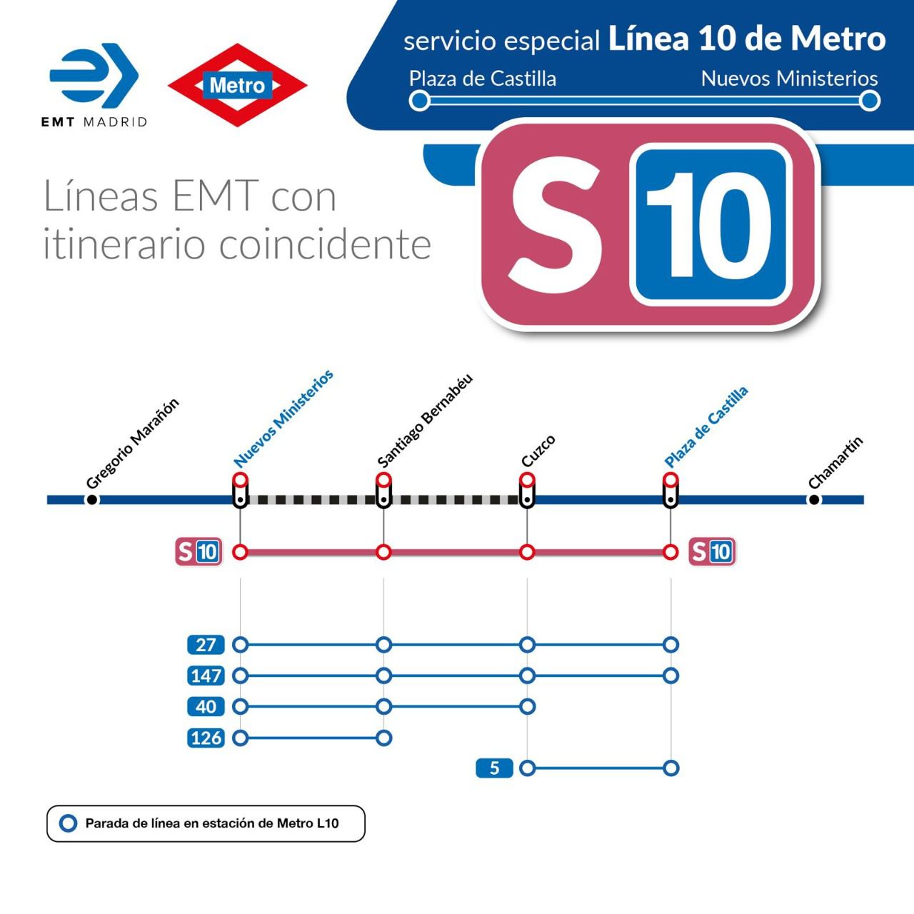 Los autobuses de EMT Madrid que cubren el tramo cortado de la línea 10 de Metro entre Cuzco y Nuevos Ministerios han registrado hasta 181.000 viajeros desde que se pusiera en marcha este servicio especial, el sábado antes de Semana Santa, hasta hoy, ha cuantificado el delegado de Urbanismo, Medio Ambiente y Movilidad, Borja Carabante.