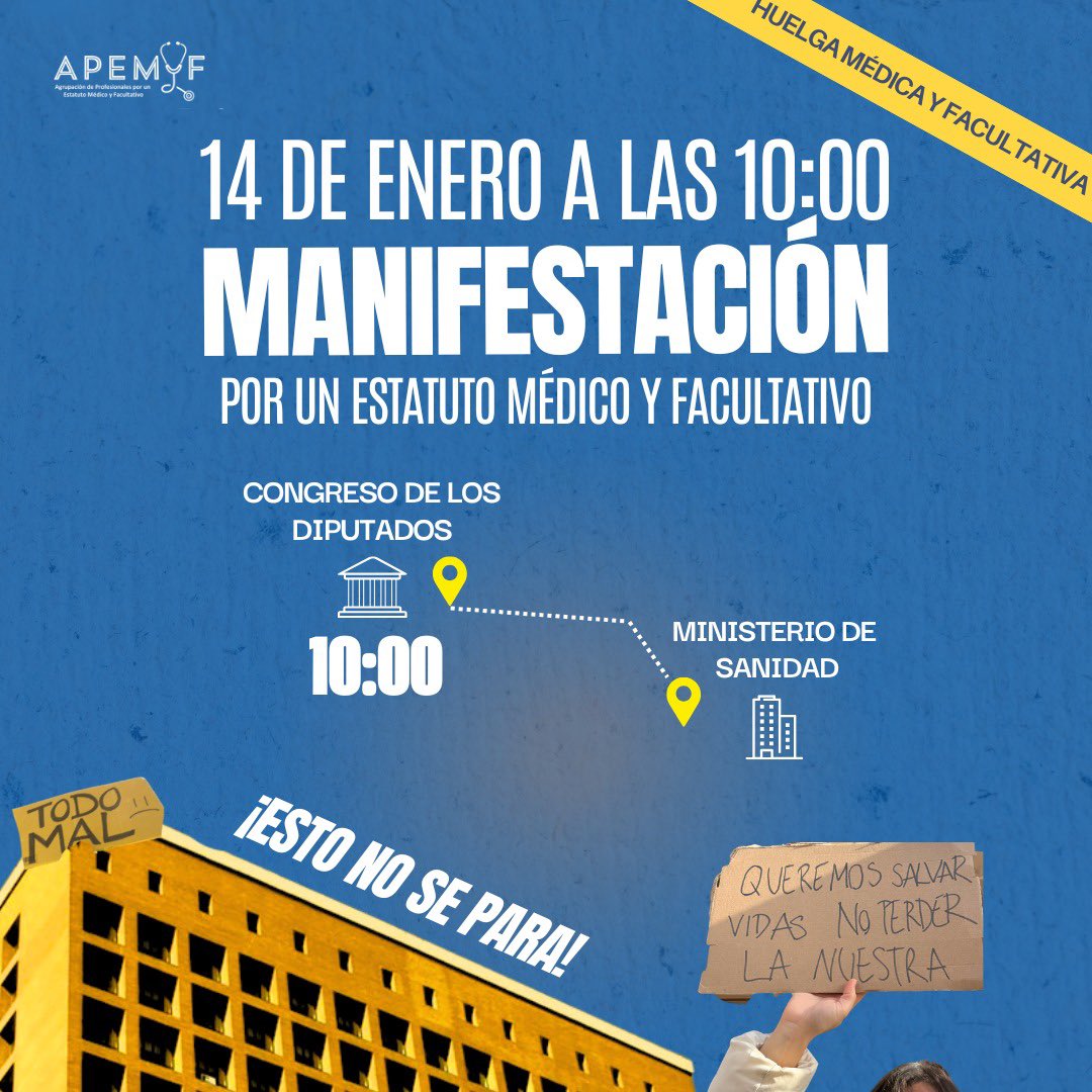 Médicos de la Comunidad de Madrid vuelven a la huelga los días 14 y 15 de enero, para exigir un Estatuto propio. La movilización, convocada por el sindicato Amyts, reclama mejoras laborales y retributivas, así como la jubilación anticipada y un nuevo modelo de carrera profesional.