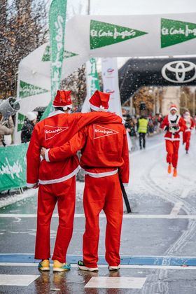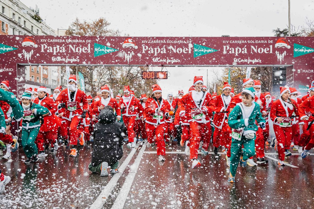 La Carrera de Papá Noel El Corte Inglés ha vuelto un año más al paseo de la Castellana con récord de participación reuniendo en esta decimocuarta edición a 11.000 personas que han teñido del rojo y blanco de Papá Noel (salteado con el verde y blanco de los trajes de los elfos que lucen los menores de 12 años) el centro de Madrid.